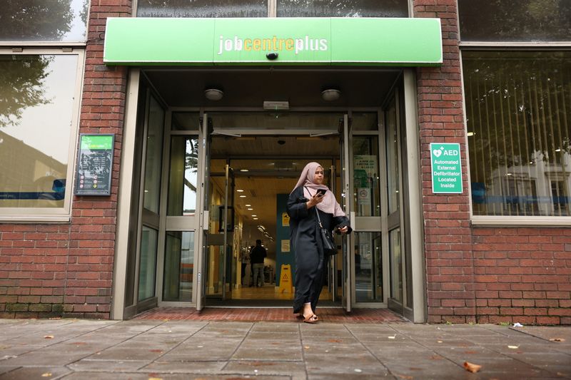 A person walks out of a job centre, in London