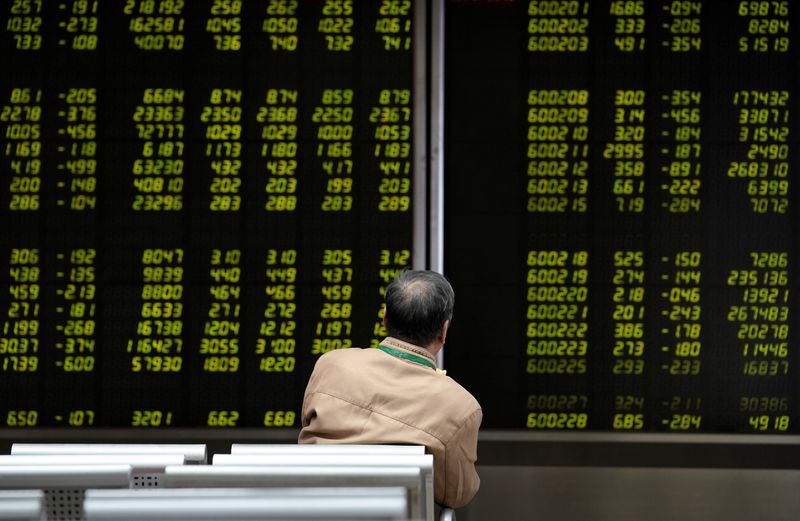 An investor watches a board showing stock information at a brokerage office in Beijing