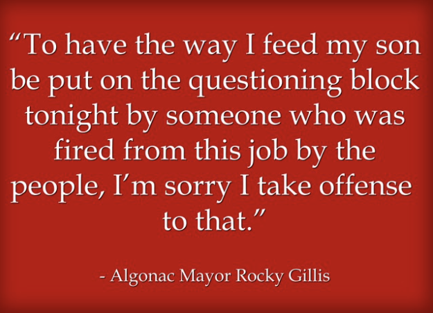 “So, I do have to have a job and I chose to work a job locally so I could be available for our residents as I believe some of you in this audience have actually come to Pryor and talked to me,” Gillis said. “To have the way I feed my son be put on the questioning block tonight by someone who was fired from this job by the people, I’m sorry I take offense to that.”
