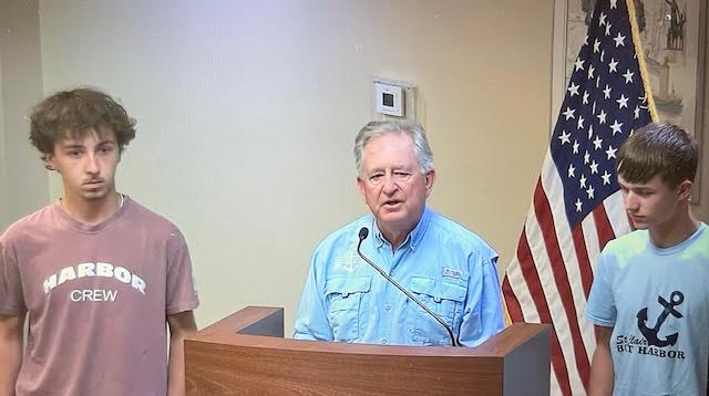 At the regular meeting of the city council June 2, Braden Kimberly and Jack Valuet, both 18. received certificates of appreciation from harbor master Dave Shorkey and a packet of gift certificates to local businesses from council member and harbor commissioner Mitch Kuffa for their rescue efforts. Kimberly has worked two seasons at the harbor and Valuet one season.