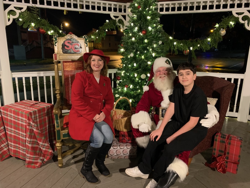 At the gazebo Santa will visit with children and hear their Christmas wishes. Hot cocoa, cookies and popcorn will also be provided.