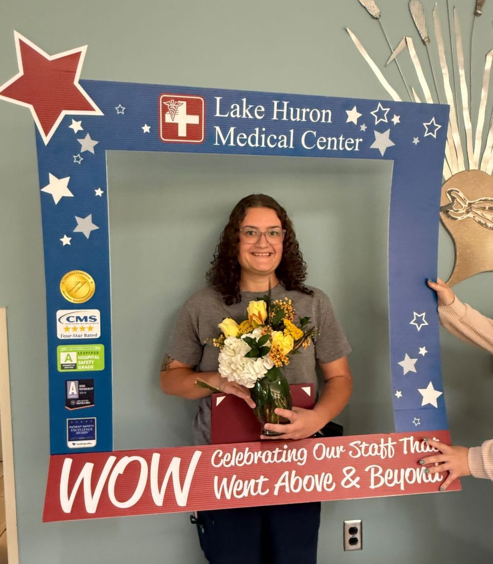 At Lake Huron Medical Center, we take pride in our exceptional employees and volunteers. We extend our heartfelt gratitude and congratulations to all our team members, especially Sierra, for going above and beyond in providing outstanding care for our patients.