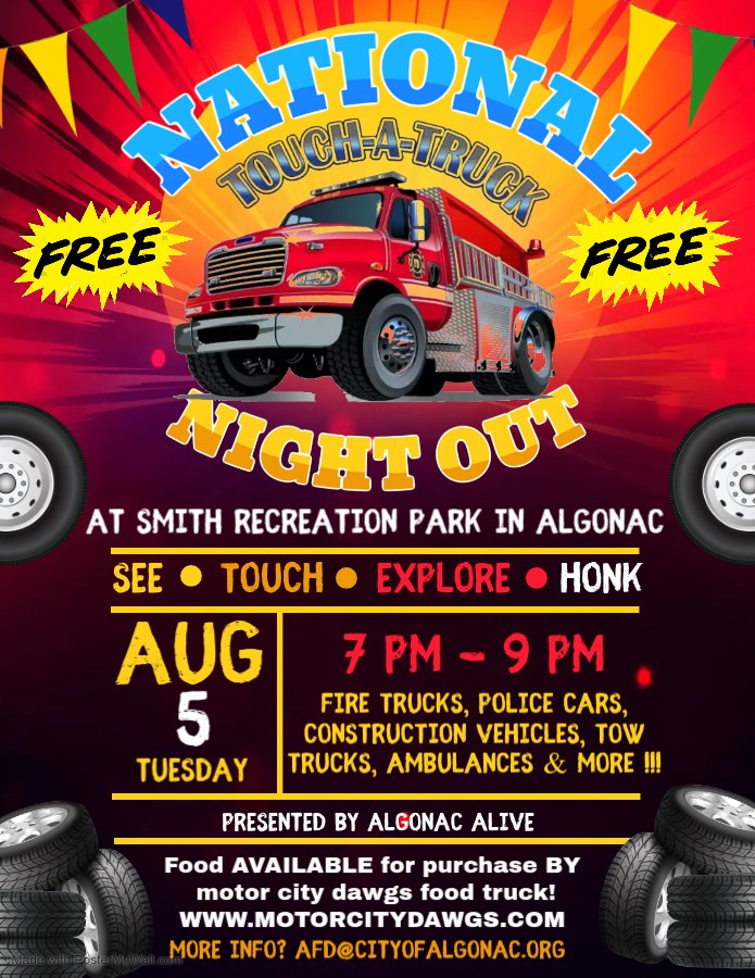 Hundreds of people are expected to turnout at Smith Recreation Park in Algonac on Tuesday, Aug. 5 for a National Night Out Touch a Truck event. The program, which will be held from 7 to 9 p.m., is hosted by the group Algonac Alive.