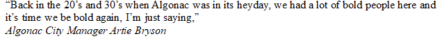 “Back in the 20’s and 30’s when Algonac was in its heyday, we had a lot of bold people here and it’s time we be bold again, I’m just saying,” Bryson said, adding that hosting round tables with city council, DDA and stake holders, plus the administration would make an impact.