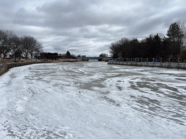 The members of the city council talked about the frozen river and what to do about it at their regular meeting March 3. They agreed to allow City Superintendent Quentin Bishop to explore hiring a boat to break up the ice at the mouth of the river and a long-arm excavator to break the ice further upstream toward the city-owned Pine Shores Golf Course.
