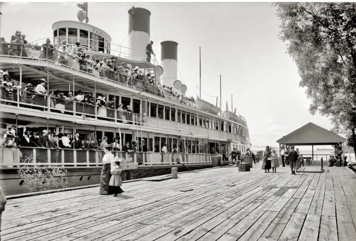 The Tashmoo would make twice-daily stops traveling from Detroit and Port Huron. The steamer adopted its name from Tashmoo Park, the park supposedly named after Tashmoo Lake on Martha’s Vineyard. The 306-foot Tashmoo made its maiden voyage on June 6, 1900, her paddle was powered by a triple expansion steam engine, which provided plenty of speed when needed.