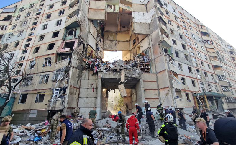 (Reuters) -Russia hit a high-rise apartment block and a bakery in Ukraine’s northeastern city of Kharkiv with guided bombs on Tuesday, killing at least three people and injuring 34, with others feared trapped under rubble, authorities said.