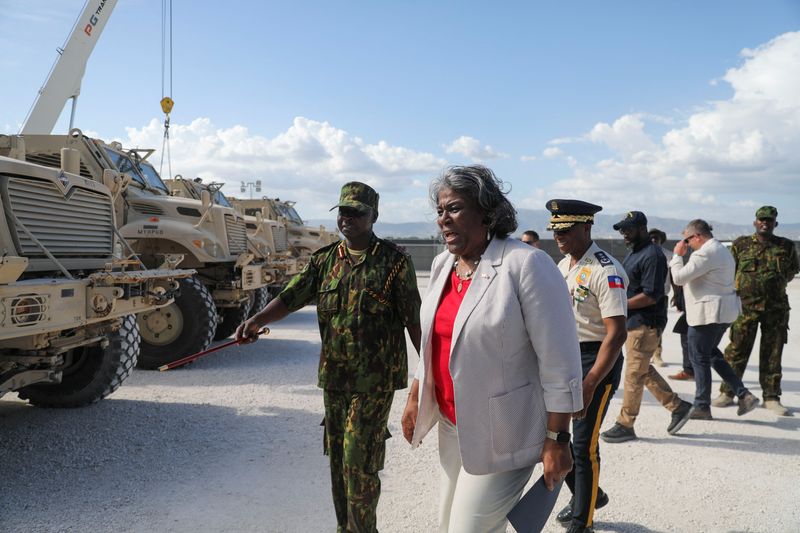 UNITED NATIONS/WASHINGTON (Reuters) -The U.S. envoy to the United Nations announced tens of millions of dollars in aid for Haiti during a visit a month after the first contingent of Kenyan police arrived as part of an international security mission aimed at tackling gang violence.