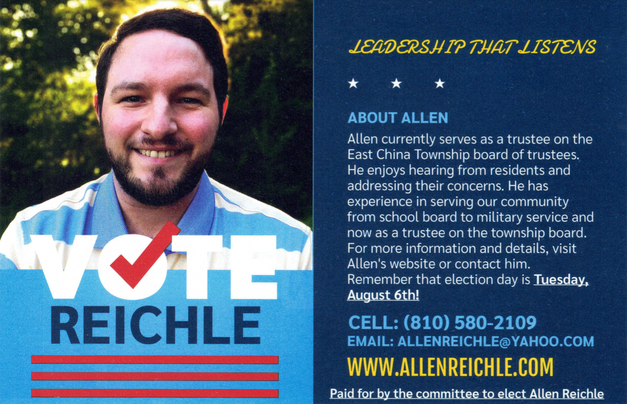 Allen Reichle, Candidate for East China Trustee, sits down with either to share his concerns about the current administration in East China Township and why his is running for re-election.