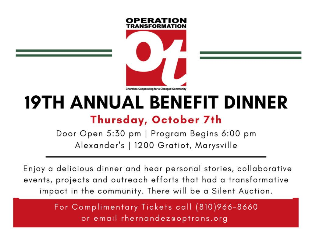 We are excited to see that our friends at Operation Transformation are putting on their 19th Annual Benefit Dinner!