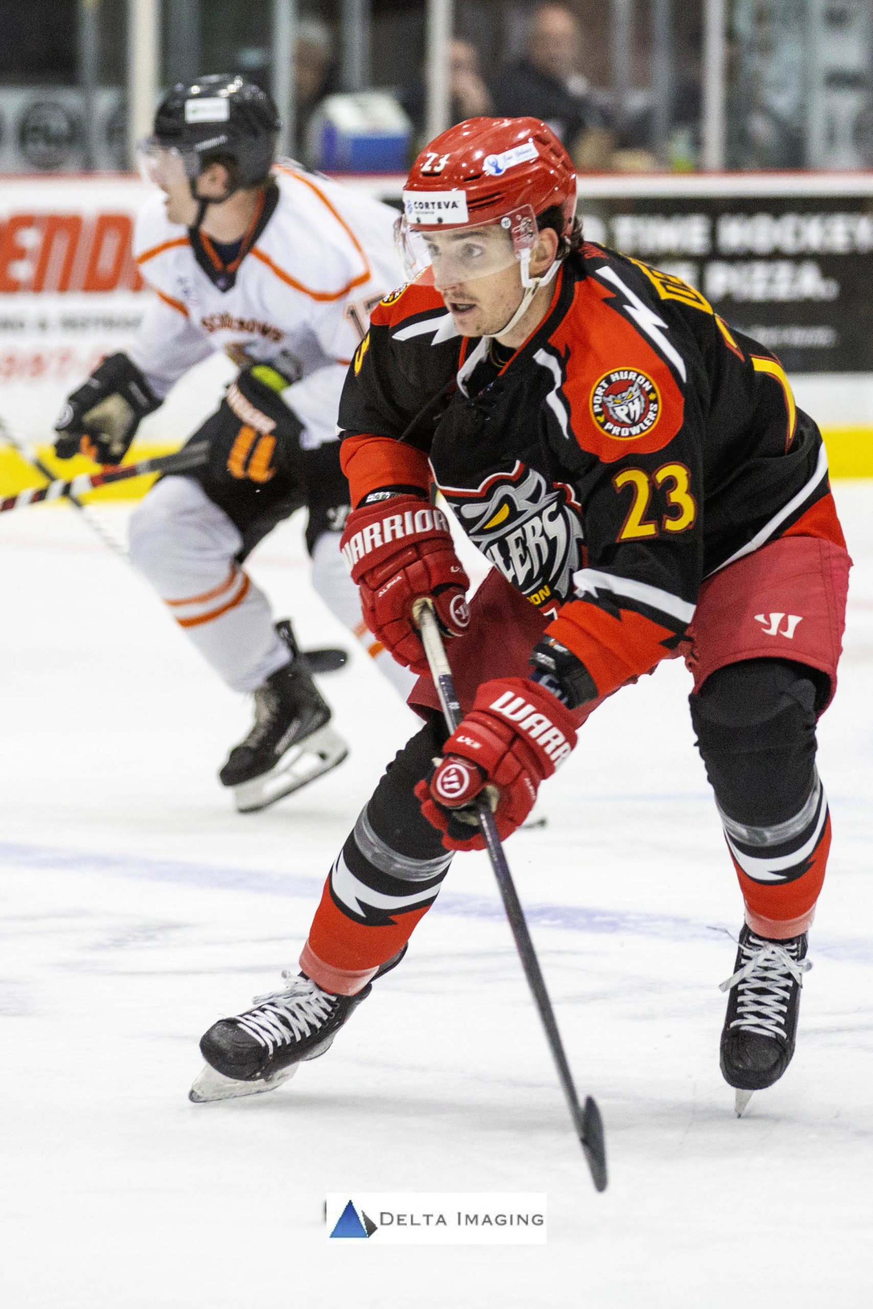 Period one of the game Friday nights was a slow defensive observation game on both parts. A handful of penalties per team, no goals and shot counts less than double digits for both teams. The Scarecrows put up 9 to the Prowlers’ 8. The difference between this game and last weekend, there was only one fight after the opening puck drop involving Jamie Bucell and Connor Lind.