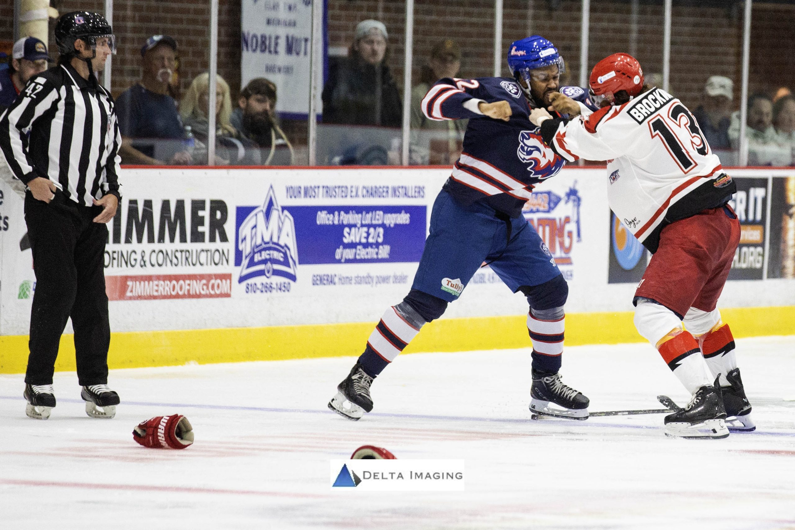 A scoreless 2nd period saw another flurry of penalties. Brockway got into his second fight of the night with Quinn Chevers who both drew Fighting majors. Chevers also picked up a minor for Lewd/Inappropriate Gesture which also carried a Game Misconduct and an ejection, at 5:57. Port Huron had a 5-3 for just under three minutes at the 13:00 mark on 57 seconds remaining to Andre Simonchyk and two minutes to Reitter for Tripping. They were unable to get a shot on goal, at Lukas Lachny was awarded a 10-minute misconduct at 18:29 for Abuse of officials. The Prowlers had an 11-7 shot advantage during the frame.