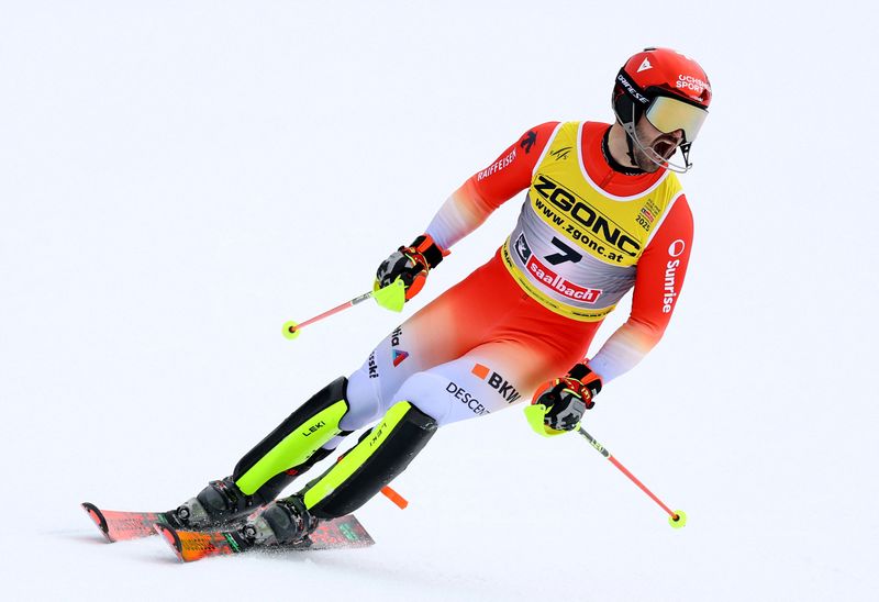 SAALBACH, Austria (Reuters) -Switzerland’s Loic Meillard won men’s slalom gold in the final race of the Alpine skiing world championships on Sunday after first-run leader Clement Noel skied out.