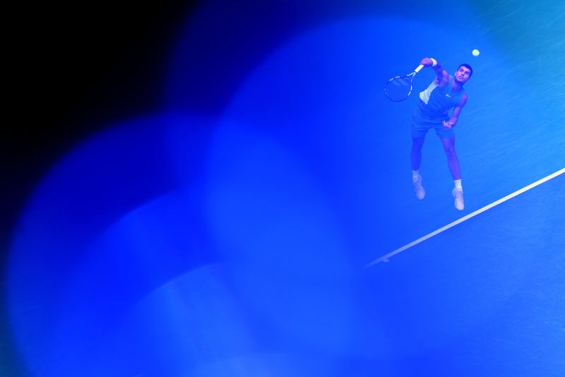 MELBOURNE (Reuters) – A relentless Carlos Alcaraz charged into the third round of the Australian Open on Wednesday with a 6-0 6-1 6-4 rout of Japan’s Yoshito Nishioka, continuing his domination of lefthanders at Grand Slams.