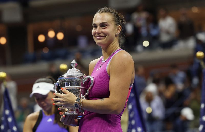 NEW YORK (Reuters) -Belarusian Aryna Sabalenka hoisted the trophy in New York at last after years of close calls, as she outplayed American sixth seed Jessica Pegula 7-5 7-5 in the U.S. Open women’s final on Saturday.