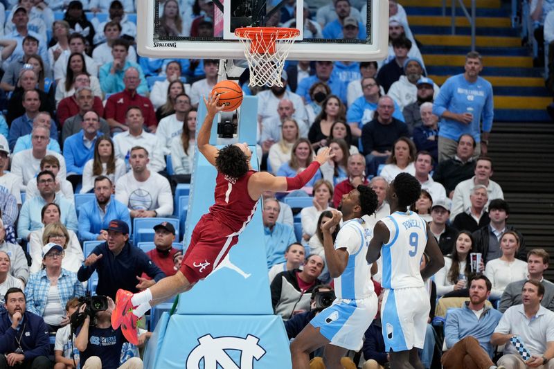 Mark Sears scored 20 points to lead six Alabama players in double figures as the Crimson Tide recorded a runaway victory over the Tar Heels in the SEC/ACC Challenge in Chapel Hill, N.C.